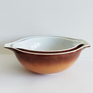 Pyrex Old Orchard Gradient Brown and White Nesting Bowls Set of 2