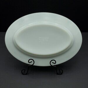Pyrex Tableware PYR2 Platter / Corning Green Leaf Serving Plate. Excellent pre-owned condition. 11-3/8" x 8". White milk glass dish with a green leaf band.
