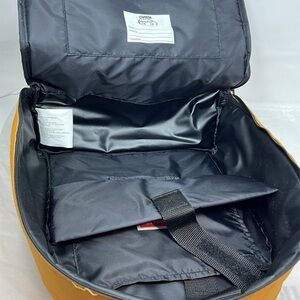 This is a great Pyrex Portables Mustard Yellow Zip Around Deep Carrier. A few scuffs from normal wear. No odors. No Tears. 13” x 13” x 5” deep. Hot and cold pack pockets. Interior is lightly padded.