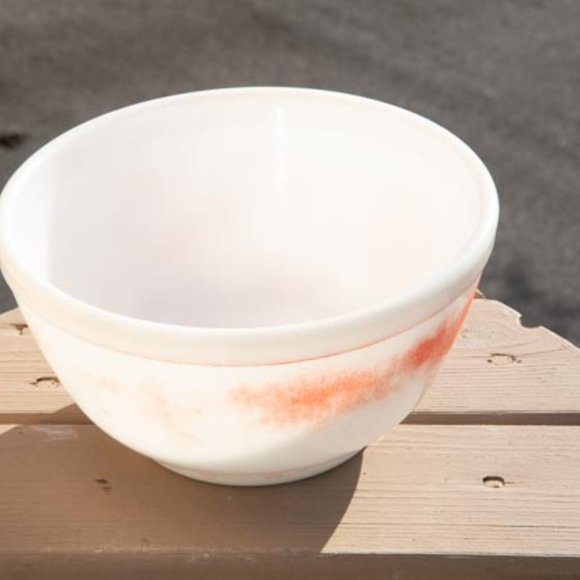 Pyrex Red Bowl with most of the color gone, otherwise good condition