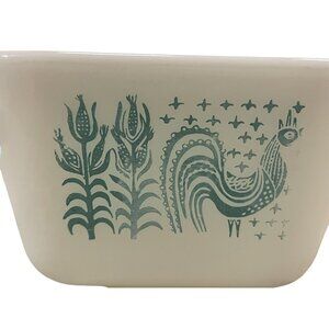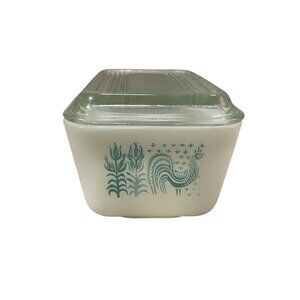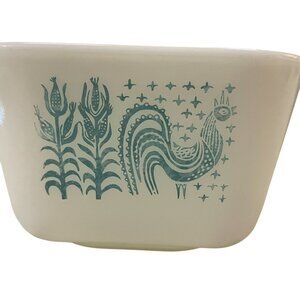 Pyrex Refrigerator Dish and Lid Used Butterprint Amish Rooster Rectangle