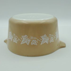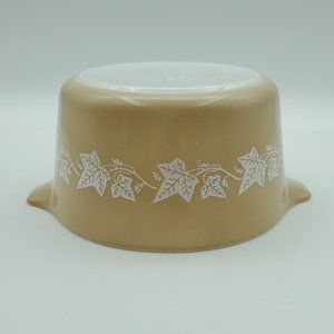Pyrex Sandalwood 473 1 Quart Casserole Dish White Leaves on Tan