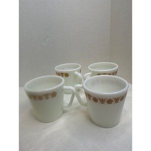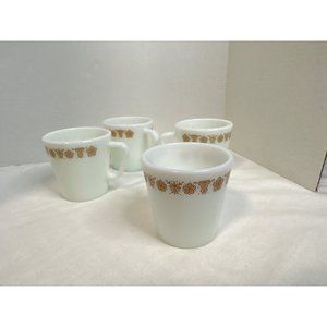 Pyrex Set of Four Butterfly Gold D Handles Coffee Tea Mugs Shower Gift Home