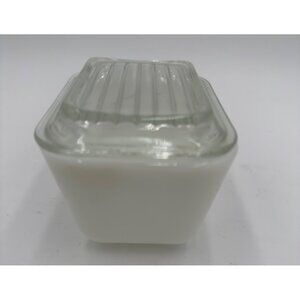 Pyrex Snowflake Garland Milk Glass Refrigerator Dish With Clear Ribbed Lid #501