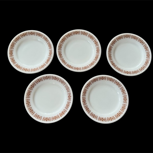 Pyrex Tableware by Corning Copper Filigree 5 Bread Plates 6.75" 704 EUC