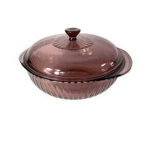 Pyrex Visions 024-S Ribbed Cranberry 2qt Round Casserole Dish with Lid