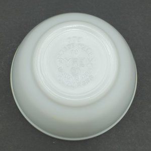 Pyrex White 1.5 Pint #401 Mixing Bowl. 5.75" across and 3.25" deep. Slight yellow gold rim under the lip. Excellent vintage condition.