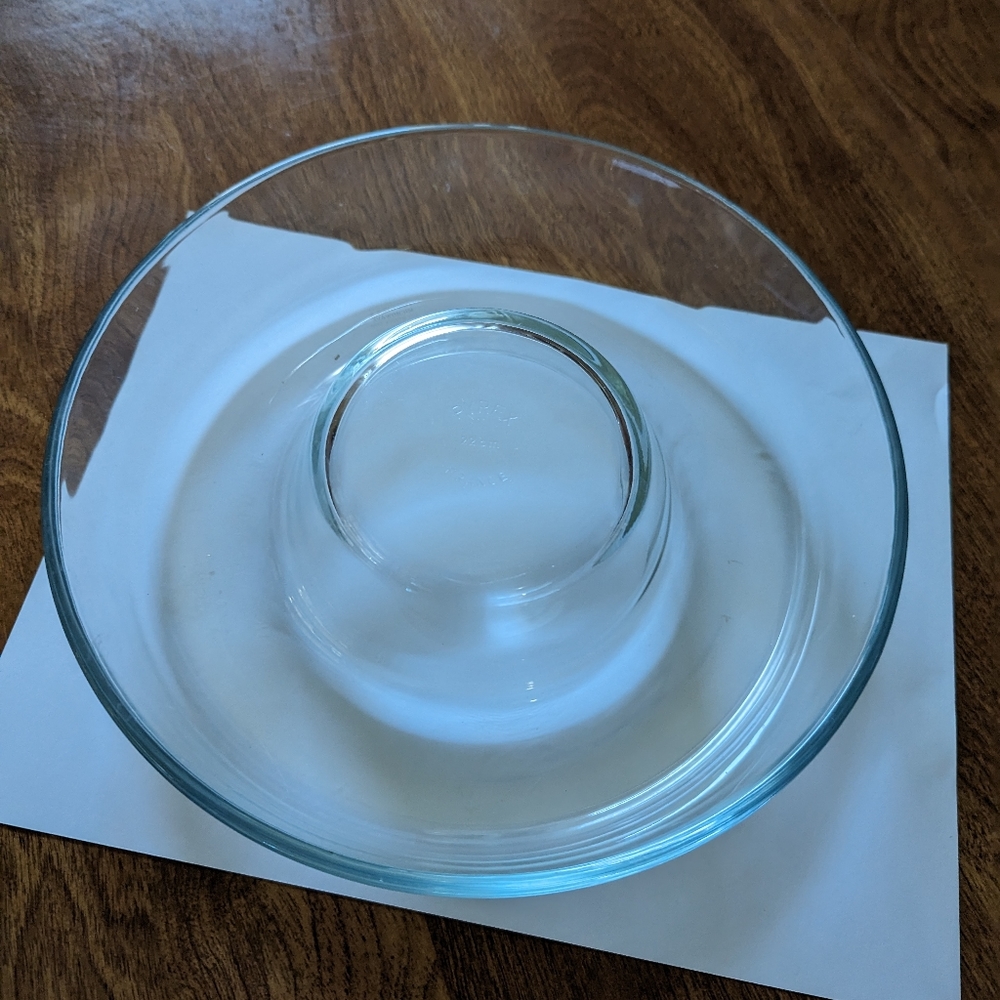 Vintage French Pyrex mold. Clear glass 22cm, measurements in photos. Very good condition - no scratches or chips. Believed to be a bunt/upside down cake pan, also have heard jello mold. All offers considered.