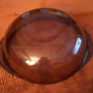 Pre-owned in good used condition.The bowl is approximately 9 inches wide including lips. It is approximately 2.5 inches tall. For oven or microwave use only. No stove top or broiler.