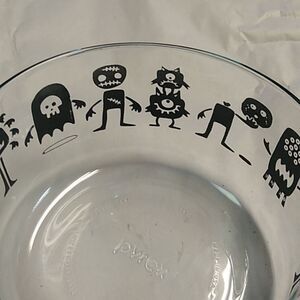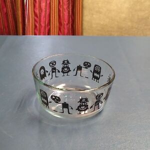 Pyrex Halloween 16 oz clear Glass Bowl with Black Monster Design