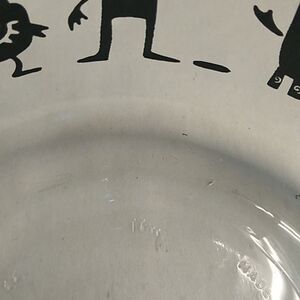 Clear glass bowl featuring a playful black monster design. Perfect for adding a fun touch to your kitchen.