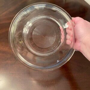 Pyrex Mixing Bowl Clear Glass with Blue Flowers & Ribbon 325 1.5L. Very good overall condition, no cracks to blue design, no chips, minor surface wear/minor scratches from normal wear stirring etc.