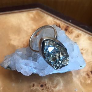Simple sterling silver ring with natural pyrite (fool’s gold) gemstone,