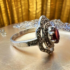 Pyrope-Almandine Garnet Marcasite Sterling Silver Cocktail Ring (7)