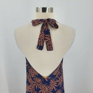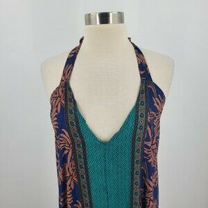 Pythia Women's Silk Printed Boho Halter Sleeveless Maxi Dress Size Small