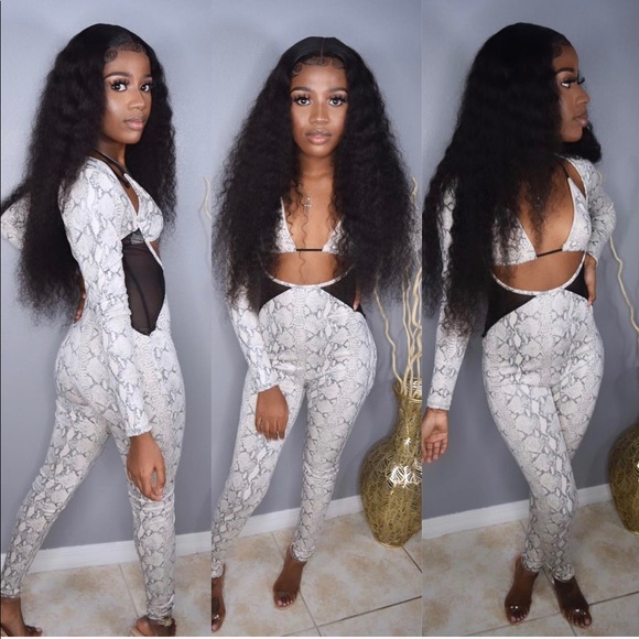 Snake Skin Material 1pc long sleeve romper with bra top