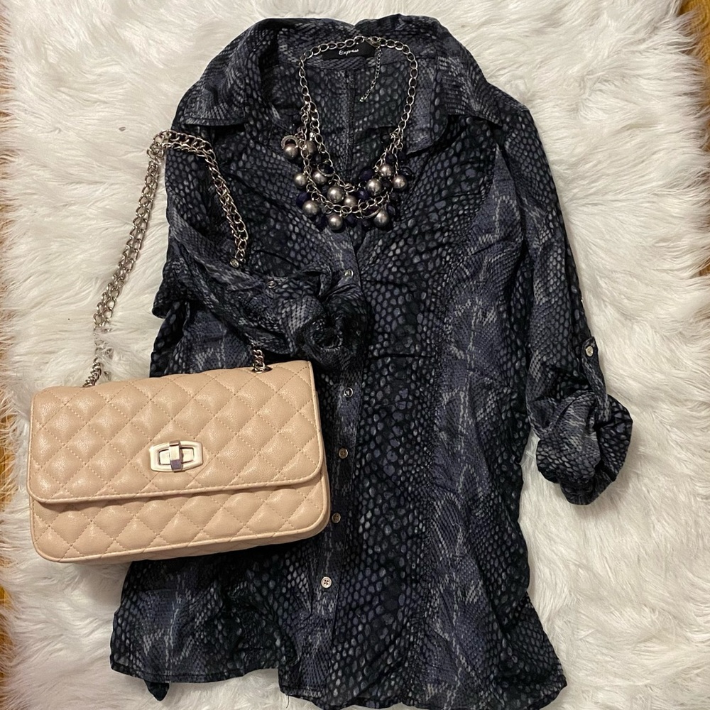 This top can be worn with dress pants for work or a cute night out with a pair of denim.