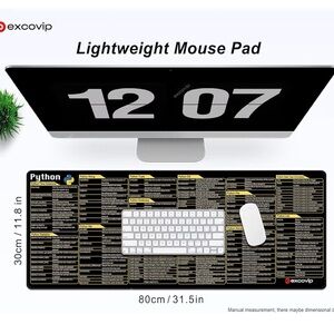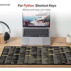Python Commands Shortcuts Mouse Pad -80x30x0.2 cm Extended Large Cheat Sheet Mousepad PC Office Spreadsheet Keyboard Mouse Mat Non-Slip Stitched Edge 0306