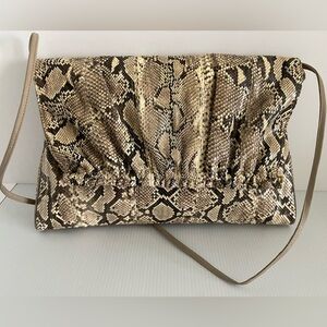 Elevate your style with this chic snakeskin/real python crossbody or clutch bag. Perfect for any occasion, it features a versatile tan color that complements any outfit.