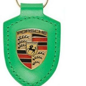 Python Green PORSCHE STUTTGART HOTROD Leather Crest KeyRing Key Chain