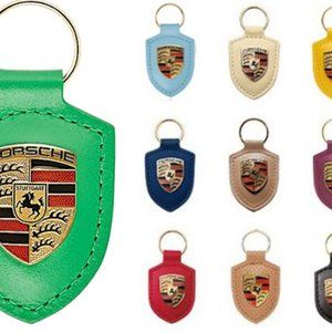 OLD STYLE EUROPEAN PORSCHE STUTTGART HOTROD RACING ROADSTER LOGO DICUT SIGN Porsche Leather Crest KeyRing Key Chain
