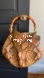 Camel and dark brown python Gucci Peggy handle bag with gold-tone hardware, bamboo handle, removable flat shoulder strap, canvas interior, two interior pockets and open top.