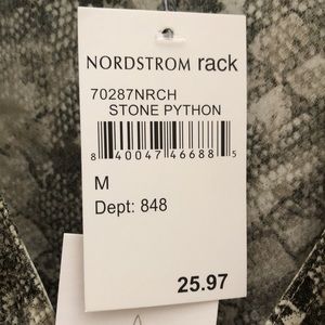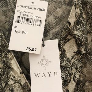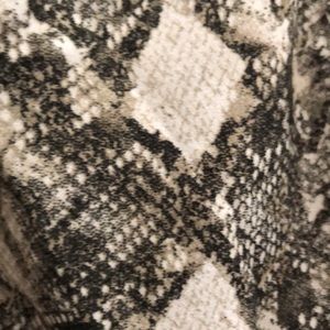 Python print blouse. Puff sleeve and gathered around the waist. V-neck with button clasp.