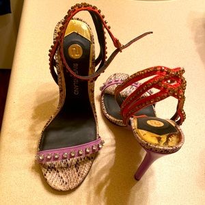 River Island Python Heels with Stones and purple/orange straps. Lightly used and a head-turner!! Very stylish heels.💜🧡