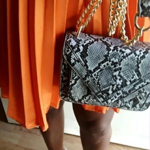 Easy envelope closure and gold chain that can be worn as a crossbody or doubled up to wear as a shoulder strap! The neutral hue is great to pair back to all black or add it to a bright colored dress to make it really stand out!