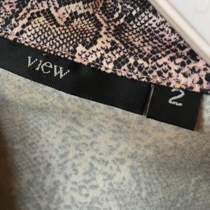 Very hip short blazer with metal buttons, breast pockets, buttoned cuffs. Back waist has adjustable buttons. Python print of black with a slight hint of pink. Very chic with jeans, pencil skirt or with almost any outfit. Marked size 2 but will fit 2-4 comfortably. In great condition. Fabric origin: France. Made in USA.