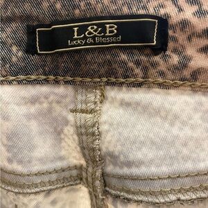 Trendy skinny jeans with a distressed snake print design. These jeans are a size 2 from the Lucky & Blessed clothing brand.