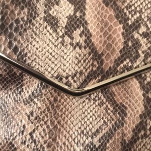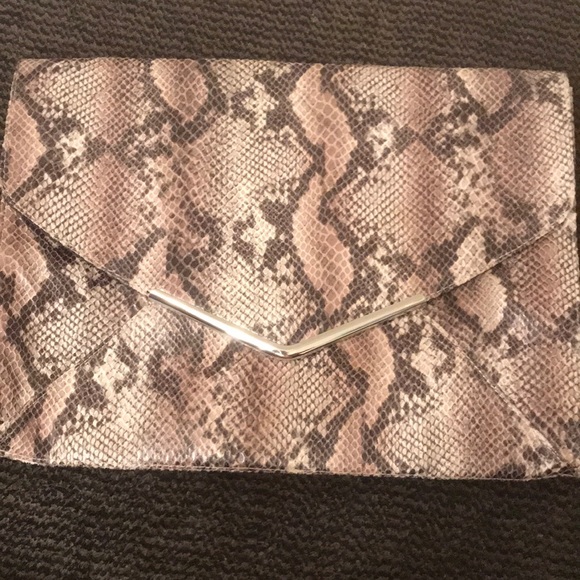 Pretty python design large clutch. Perfect for going out dimensions are 16x8. Brand new , clean.