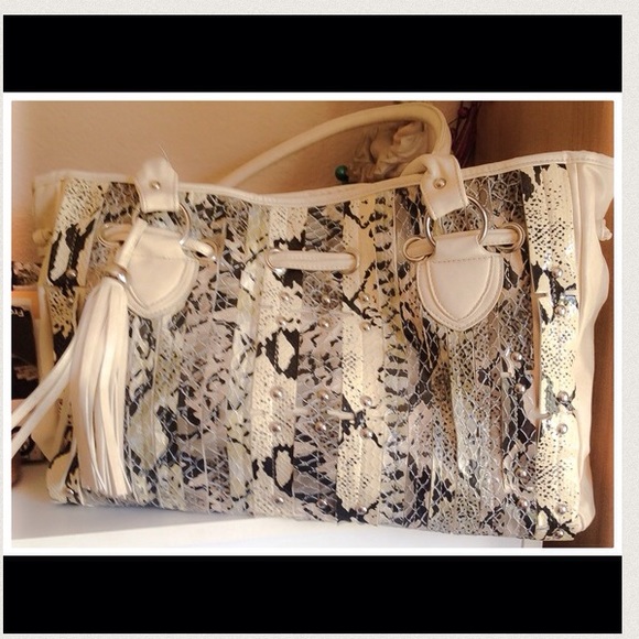 Large Ivory tote bag with Python pattern, enough space for all your stuff to fit.