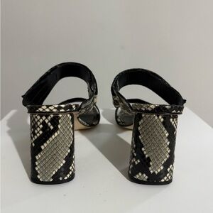 Made in Italy genuine python embossed leather sandals. Size 8 is true to size. Adjustable Velcro straps for comfort. 3” heel. Brand new without box.
