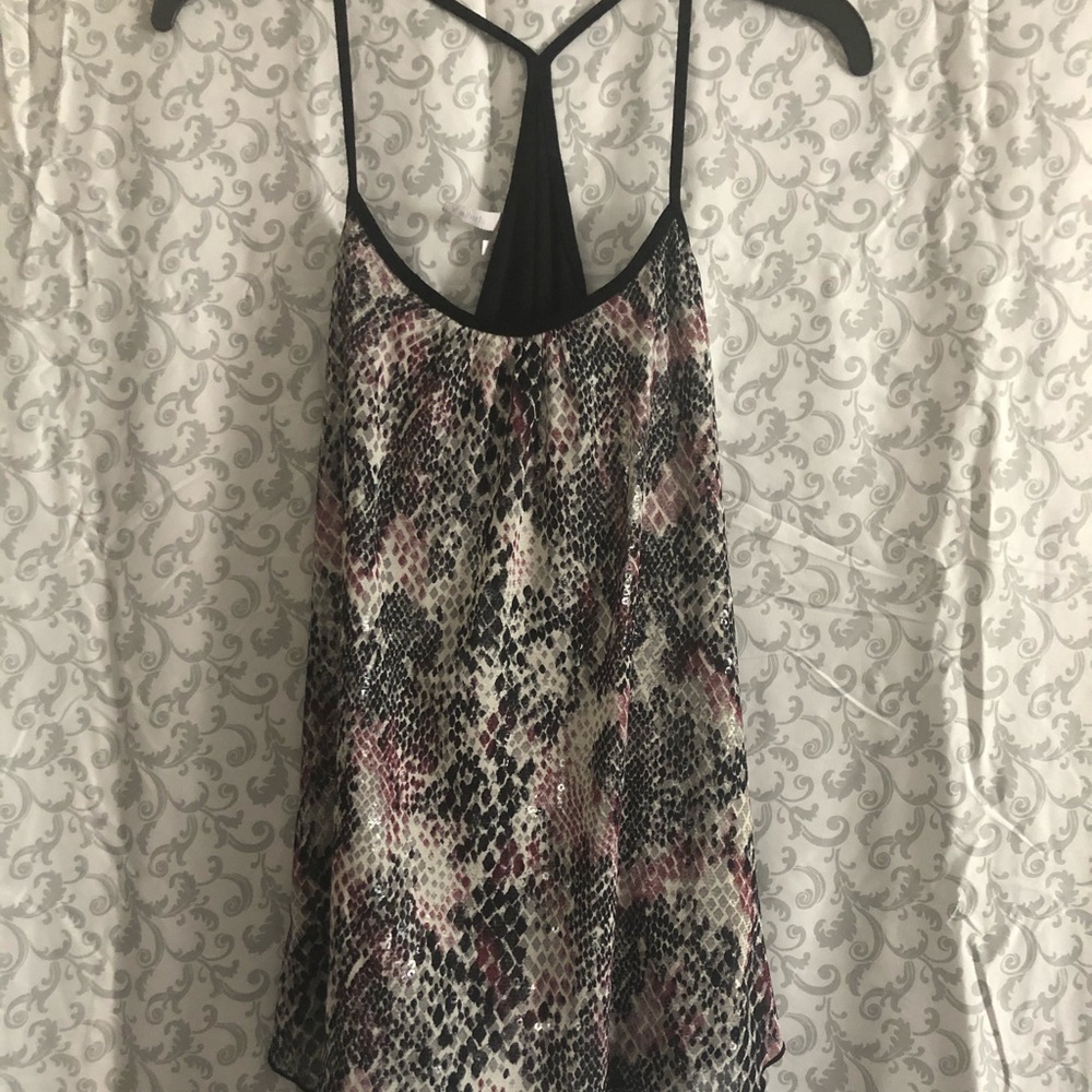 Gorgeous Python print in purple/ cream / black. Racerback camisole. Flowy bottom, great for summer!