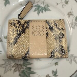 This chic wallet features a stylish beige and black snakeskin design, perfect for adding a touch of elegance to your accessories collection.