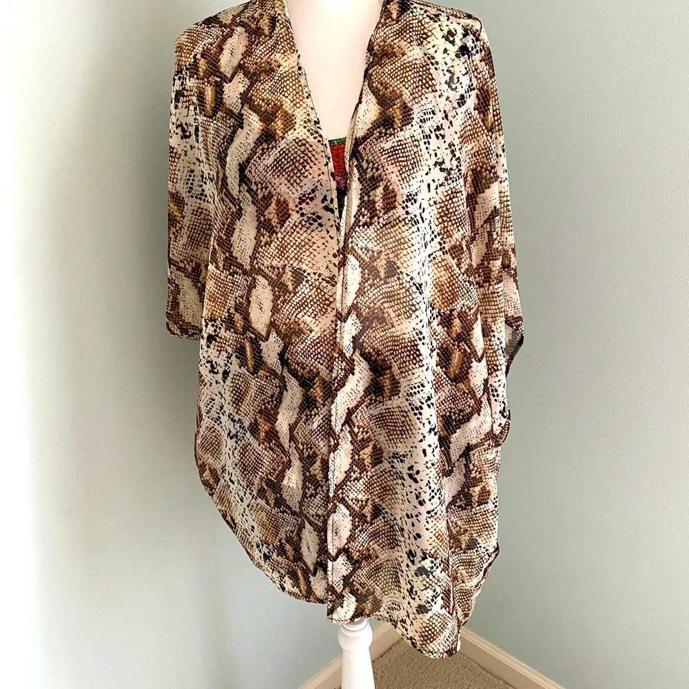 So versatile! Thin organza like material - not for warmth, but made to wear as a cover-up over swimwear or as a layering piece over a cami. Another of my favorites - soft & smooth against the skin - opaque fabric. One size fits most.