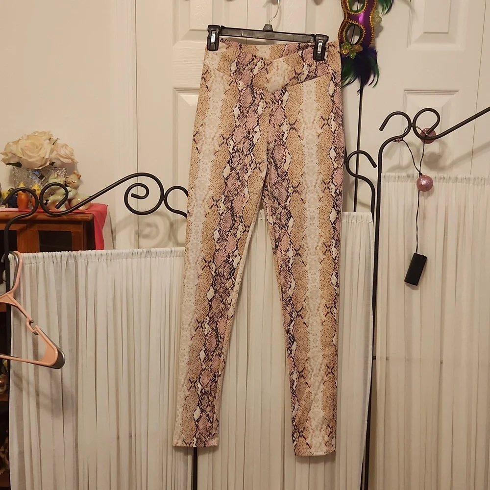 Adorable size small stretchy and form fitting python printed, waist 13.5 inches across pants, high waisted
