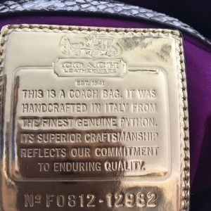 Exotic bag made by Coach this bag was made by hand and manufactured in Italy. Exquisite detailing. Can be worn on your forearm or as a shoulder bag.