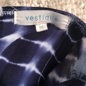 Vestique brand. Navy/white. Python pattern tie-dye. Size Medium. Adjustable straps. Cute for a cover up or ready to wear. Open back design with zipper enclosure.