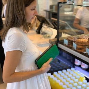 Beautiful color python wallet. Size is perfect for going out and can be used as a clutch.