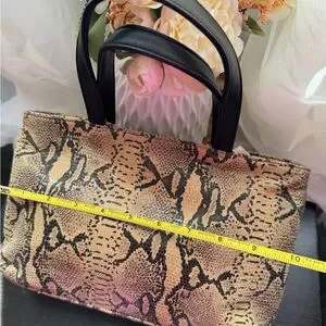Stylish women's tote featuring a python-print exterior and black handles. Versatile design for everyday use and elevated casual looks. Lightweight and easy to carry with a bold neutral colorway.