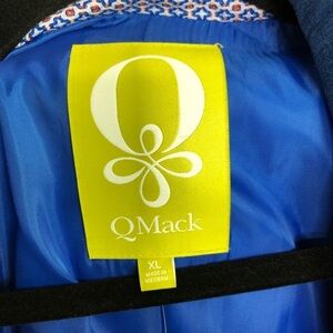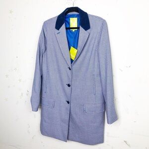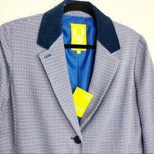 Q Mack printed textured coat, with blue velvet color buttons at the front with two pockets blue lining.
