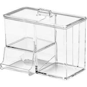 🧿【Pretty & Sleek】: This swab holder features 3 different compartments and a dustproof lid to keep the items neat and clean. The opening in the front allows you to take the cotton pads out with ease. The crystal clear design makes it a stylish decor for your bedroom, bathroom, office, drawer, and dresser.