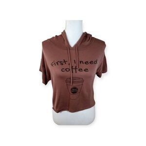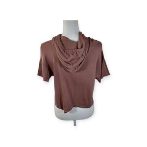 Q U.S.A BROWN HOODED CROP TOP SZ.S/M EUC.