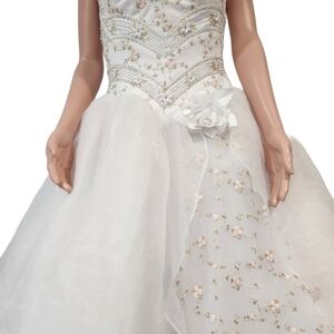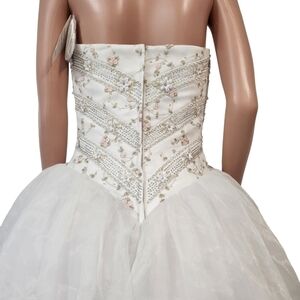 Q by Da Vinci White With Embroidered Spring Floral Quinceañera Dress Size 8