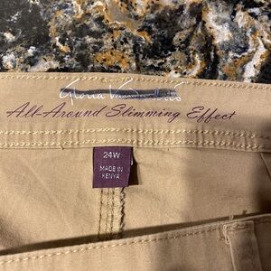Q womens Gloria Vanderbilt stretch solid tan plus size cargo capris 24W