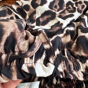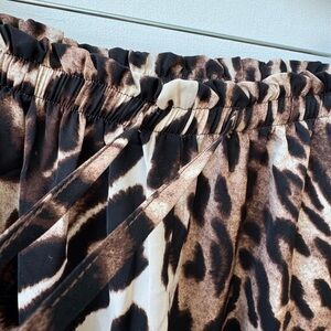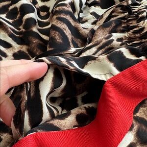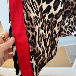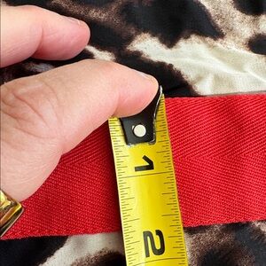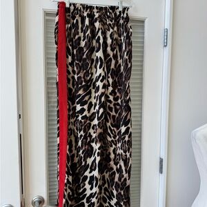 Wide leg elastic waistband flowy pants. 1.5 inch red band down thigh