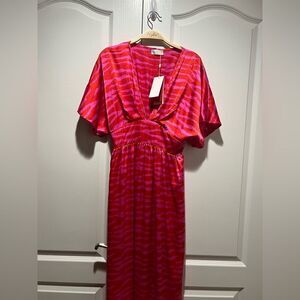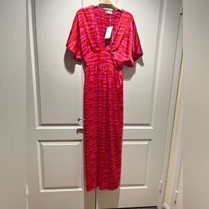 Q2 MAXI CINCHED AT THE WAIST LAVINA PRINTED DRESS size S NWT