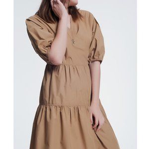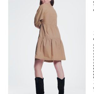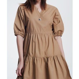 NWT Q2 Wrap Front Camel Baggy Mini Dress with Balloon Sleeves